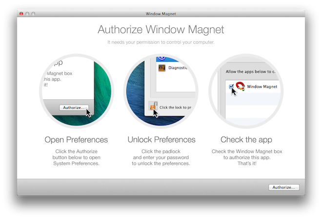 Velice jednoduchý, ale zato velice užitečný program. Jak název napovídá, jedná se o „magnet” pro přizpůsobení okna programu na vámi zvolenou část obrazovky. Funkce, kterou uživatelé mají na Windows už od verze Windows Vista představené roku 2006, se až do nového OS X El Capitan zatím nepodívala. Vývojáři tak museli přijít se samotnou aplikací, za kterou si účtují 4,99 dolaru. El Capitan sice nabízí základní práci s přichytáváním oken k okrajům obrazovky, ale stále to není ono. Magnet toho podporuje daleko více.