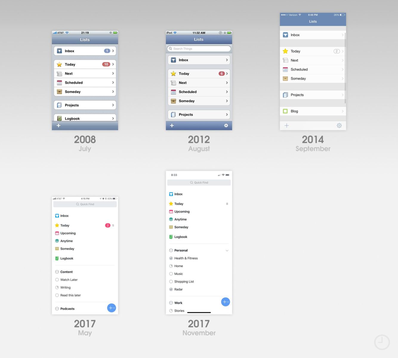 Aplikace Things započala svou existenci nejdříve na počítačích Mac, s příchodem iOS 1.0 jste si ji však mohli nainstalovat i do svých iPhonů. První verze aplikace byla navíc vytvořena za pouhý měsíc práce, což se v zdá být v dnešní době nemožné. Ono ale titulu také chybělo spoustu funkcí, jako např. synchronizace úkolů napříč zařízeními.