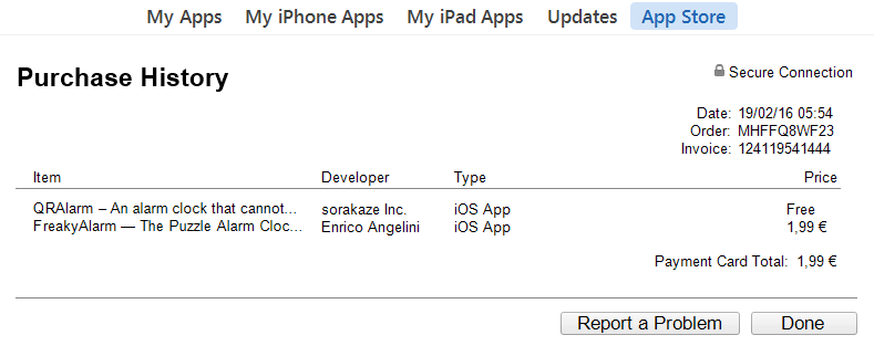 Ze všeho nejdřív potřebujete fakturu s informací o úspěšném zakoupení aplikace v App Storu. Měli byste ji obdržet pár dnů po provedení transakce na email, pod kterým máte registrováno své Apple ID. Je velice přehledná. Naleznete v ní názvy pořízených aplikací společně s celkovou cenou včetně DPH. Teprve v okamžiku, kdy obdržíte fakturu, můžete podniknout další kroky pro vrácení peněz za nákup.
