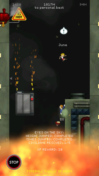 Výtah sloužil skvěle až do dne, kdy přestal pracovat. Katastrofická exploze otřásla prvním vesmírným výtahem na světě. Naštěstí jste v práci! Jako neohrožený mechanik skáčete tak vysoko, jak jen můžete pro záchranu všechny lidi v nebezpečí. Prostředí kolem vás se hroutí. Dejte si pozor na nebezpečí kolem vás a nezapomeňte na stoupající hořící ohnivé koule zkázy.
