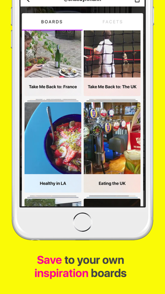 Život je o sbírání bohatých zkušeností. Naše komunita průzkumníků prohledává zeměkouli, aby našla co nejvíce unikátních potravin a cestovatelských zážitků a sdílela je s vámi pomocí videa. Najděte něco, co vás inspiruje. Jednoduše klepněte na uložit a vytvořte si seznam míst pro své zážitky. V aplikaci Facet nenajdete všechno, ale jen ty věci a místa, které jsou něčím zajímavé. Každý den přibývají nejnovější trendy a nejžhavější místa, která jsou něčím unikátní, populární nebo inspirující.