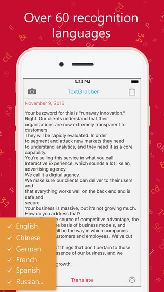 TextGrabber – image to text app: copy recipe from a cookbook, scan QR code, capture text on photo and send to translator