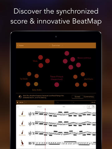 Aplikace, která vás naučí známé Vivaldiho Čtvero ročních období na housle, se v tomto týdnu dostala do App Storu. Obsahuje noty, a to jak pro samotné housle, tak i pro sborové hraní a také rozložení nástrojů v orchestru. Vše je ještě doplněno videi a zvukovými nahrávkami. Jedinou nevýhodou je pouze vyšší cena.