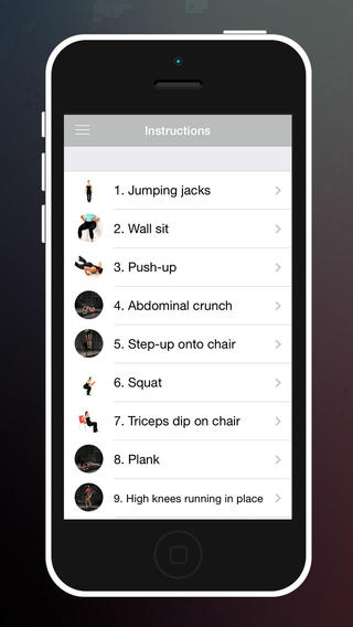 Vědci vybrali 12 cvičení. 12 cvičení využívajících pouze tělesnou hmotnost, židli a stěnu. Toto cvičení splňuje nejnovější kritéria pro vysoké úsilí, které v podstatě kombinuje dlouhý běh a návštěvu posilovny do asi sedmi minut ustáleného cvičení – to všechno založené na vědě. Cvičení se provádí po dobu 30 sekund, s 10 sekundami přechodné doby mezi cvičením. Celkový čas pro celý okruh cvičení je cca 7 minut.