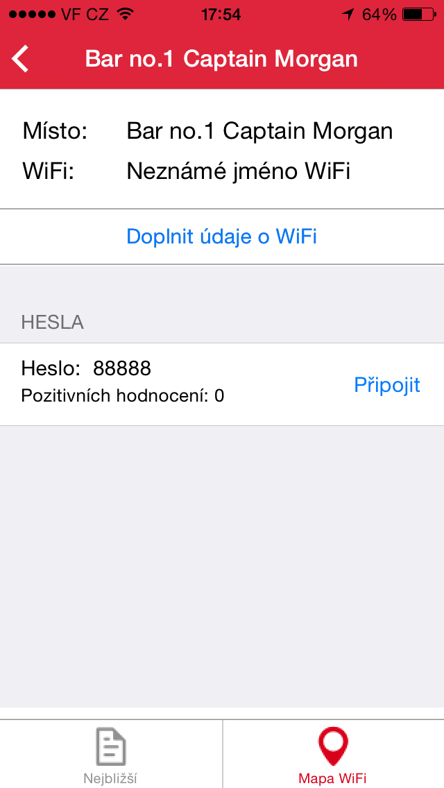 Potřebujete se připojit k nějaké Wi-Fi síti, ale neznáte heslo? Zkuste aplikaci Wifič, která je velkou databází českých Wi-Fi sítí a jejich hesel. Nejčastěji pak zde najdete hesla k zabezpečeným sítím v hospodách, restauracích apod.