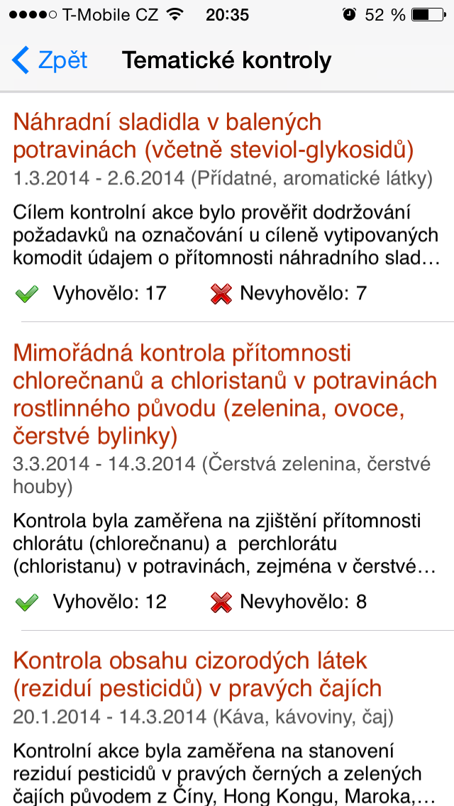 Jedná se o aplikaci zobrazující informace z portálu Potraviny na pranýři a z WWW stránek Státní zemědělské a potravinářské inspekce, které jsou určeny všem spotřebitelům nakupujícím potraviny v České republice.
