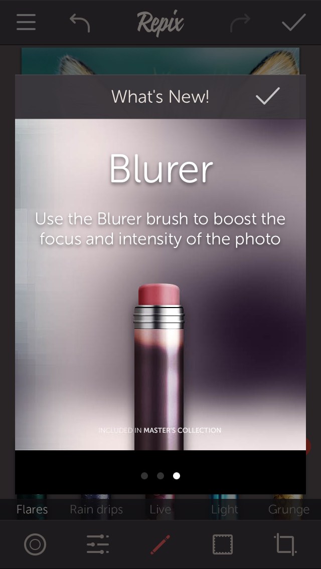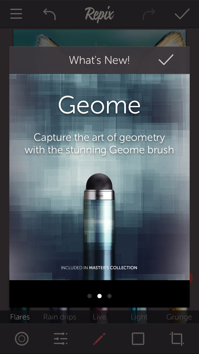 Do této populární fotoaplikace byly přidány nové štětce – jmenovitě se jedná o Rain Brush, který přidává vašemu snímku vodní kapky, s Geome Brush můžete vkládat geometrické tvary a s Blurer Brush se lze zase snímek bodově rozmazávat.