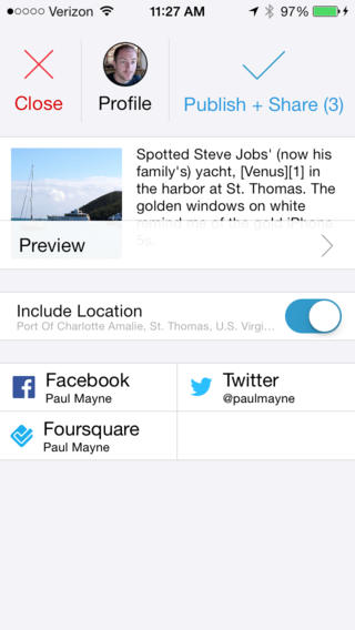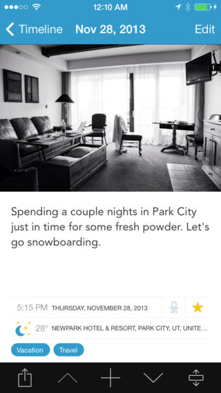 Pisatelé deníku jistě ocení tuto aplikaci, kde namísto papíru píšete (prstem) do vašeho iPadu/iPhonu. Výhodou oproti běžným deníkům je možnost přidávat do vašich zápisků i obrázky, záznamy o počasí, o vaší fyzické aktivitě, o poslouchané hudbě ve vašem přehrávači a mnohé další. Nově se rozjela i služba publikování vašich záznamů na blog nebo jejich prosté sdílení na Facebook a Twitter.
