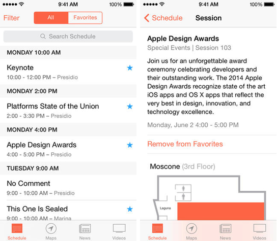 Loni dostala aktualizace celkem zásadní vylepšení, a to integraci videa přenosu přímo z konference. Tento rok se však nejedná o nic velkého, vyjma nového iOS 7 vzhledu s oranžovými grafickými prvky. Aplikace teď tak lépe zapadá do Apple ekosystému.