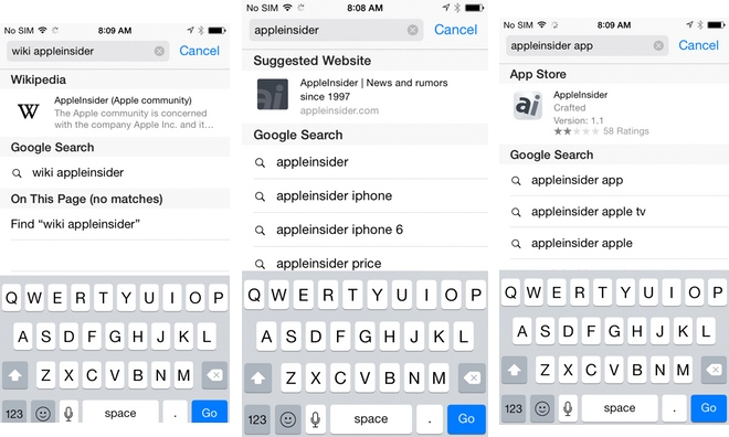 Apple již nahradil Google v Siri při představení iOS 7 v roce 2013. Od té doby poskytuje výsledky výchozího vyhledávání Bing od Microsoftu, nicméně uživatelé mají možnost virtuální asistentku požádat o vyhledávání pomocí Google při použití formule „search Google“.