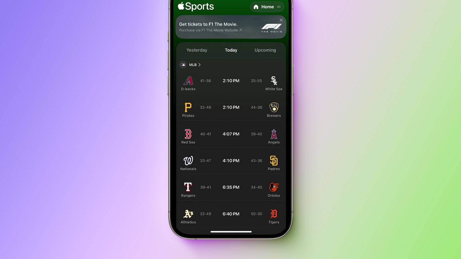 Společnost propaguje svůj závodní film s Bradem Pittem skrze reklamy napříč minimálně šesti aplikacemi na iPhonu. Reklamy se objevily v App Store, Apple Wallet, Apple Sports, Apple Podcasts, iTunes Store a samozřejmě v aplikaci Apple TV.