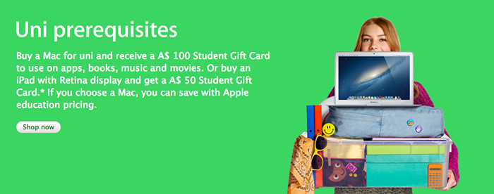 Dnes, 1. července, Apple zahájil svoji kampaň, kde nabízí studentům dárkové iTunes/App Store karty za nákup Macu, iPhonu nebo iPadu.