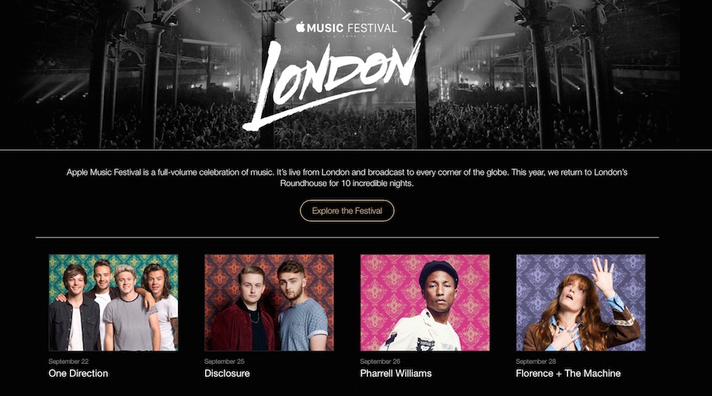 Apple oznámil konání Apple Music festivalu na měsíc září tohoto roku. Událost, která byla dřív pojmenována jako iTunes Festival, se bude konat již tradičně v londýnském Roundhouse, kde vystoupí hvězdy jako Pharell Williams, One Direction a mnoho dalších.