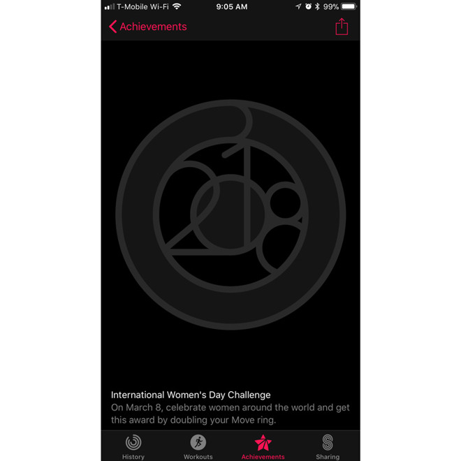 Výzva se zaměřuje na Mezinárodní den žen a je potřeba 2× uzavřít kroužek pohybové aktivity (ten červený). Po jeho úspěšném dvojnásobném uzavření pak dostanete jedinečný odznak, který se poté uloží do vaší sbírky.