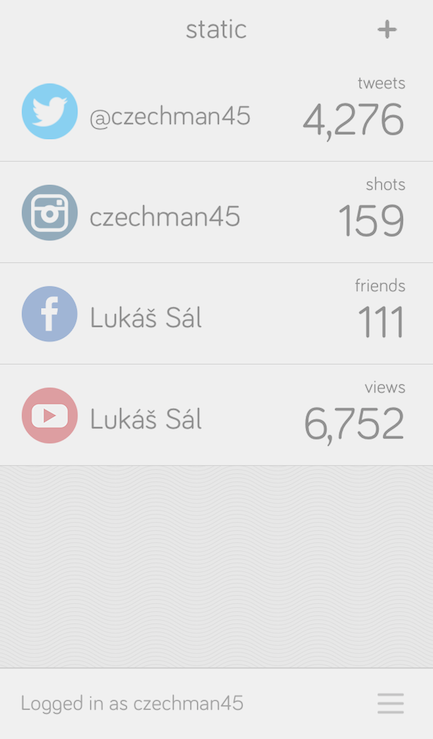 Tato aplikace vám pomůže sledovat vaše sociální účty, jako je Instagram, Facebook, Twitter, Youtube, Google Plus, Foursquare, Linkedin, Vimeo a spousta dalších. Každou tuto službu, u které budete chtít znát data a statistiky, si do aplikace uložíte a dovolíte jí tedy tyto údaje uchovávat a dělat vám tak přehledné grafy. U každého účtu můžete sledovat jiné ukazatele, které pro vás jsou ty nejdůležitější. Například počet followers na Twitteru, počet zhlédnutí vašich videí na Youtube účtu a tak dále. Máte vše tak přehledně uložené v jedné aplikaci a nemusíte si pro tato čísla chodit do každé aplikace zvlášť. V samotné aplikaci máte pět míst na vaše sociální účty zdarma, pokud budete chtít sledovat více než těchto pět, musíte si další dokoupit.