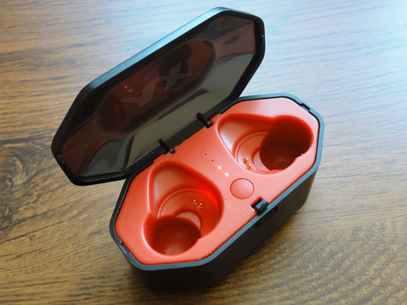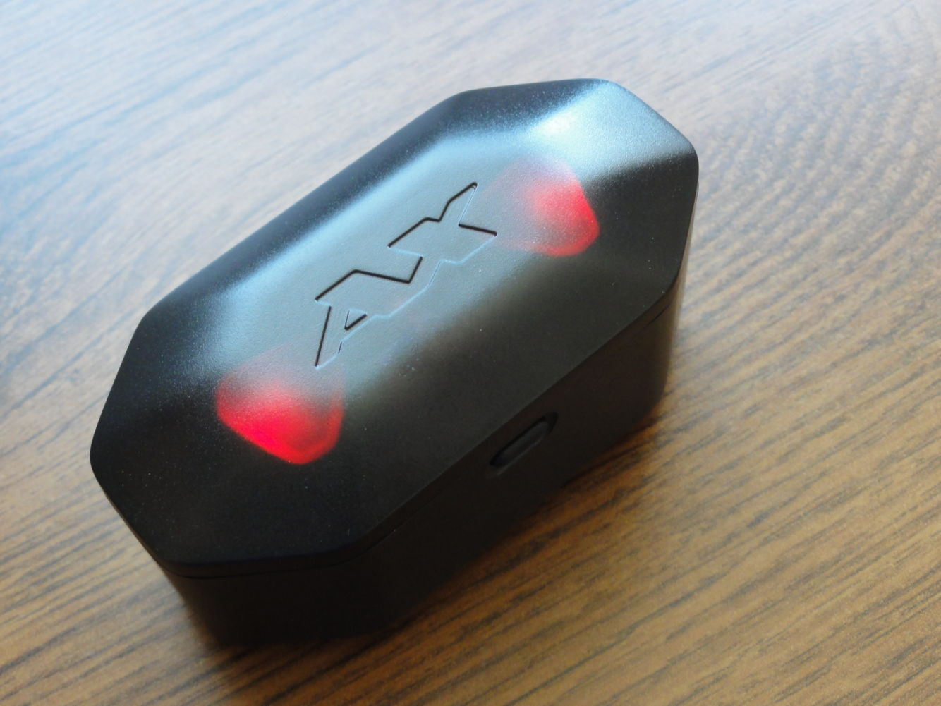 S Axum Gear dostanete, podobně jako u AirPods, nabíjecí krabičku. Ta je vyvedena z černého plastu s tím, že horní víčko je průhledné. Je to proto, abyste viděli, zda už jsou vaše sluchátka v nich zcela nabita. Ty totiž obsahují diody. Svítí-li po vložení červeně, je třeba je nabít. Svítí-li bíle, nebo vůbec, nabíjení bylo ukončeno z důvodu jejich plného nabití. Otvírání je navíc na pružinu, takže vám k tomu stačí jedna ruka, ne jako je tomu u sluchátek od Applu.