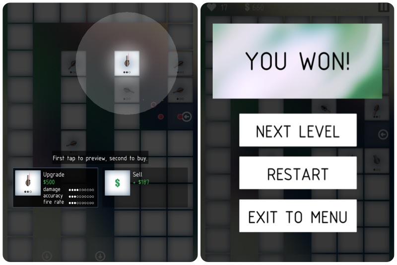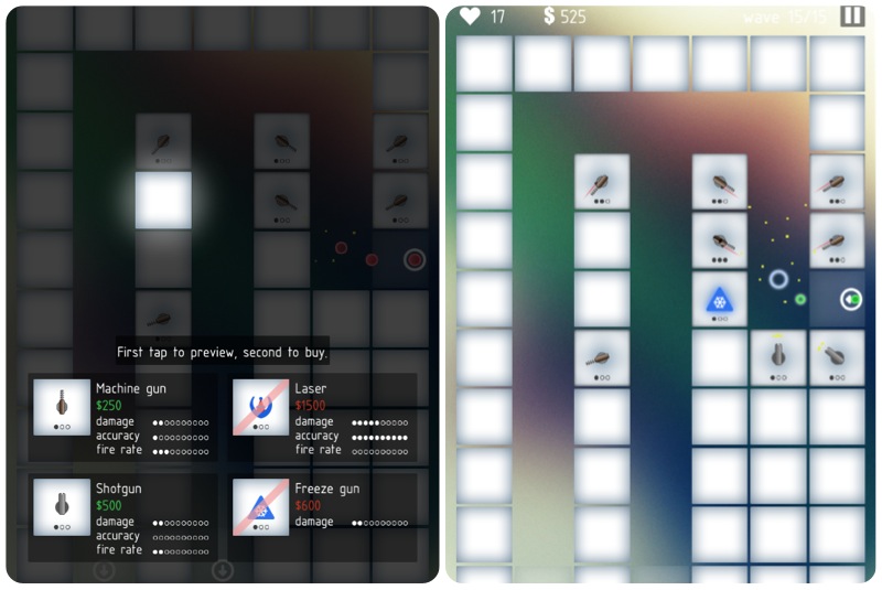 Výjimečnost této hry spočívá v použití selského rozumu při vývoji. Většinou každé studio investuje velké peníze nebo spoustu času do vývoje aplikace s nejistým výsledkem. Brainwash zvolilo cestu, kdy vytvořili během 14 dnů hru a nyní čekají, jestli se uchytí. Dali si něco jako cíl na kikstarteru. Pokud si hru koupí 20 000 lidí, udělají bezplatný update. Mohlo by se zdát, že kvůli krátkému vývoji bude hra nedodělaná a odfláknutá, ale není tomu tak. Samotní vývojáři si nějaké nedodělky uvědomují, v principu však hra funguje jak má. Autoři uvádí: „Jde o test našich schopností, a také o interakci s komunitou, zda má zájem o další vývoj“.[quote align=“center“ color=“#999999″]Hra vyniká především jednoduchostí, ne však herní.[/quote]Základem hry je mapa přes celý displej, která je poskládána z dlaždic. Ty s každou další úrovní mění své uspořádání. Mezi nimi vznikne cesta, kterou musíte ubránit. Jde tedy o klasickou tower defense hru. Po cestě se pohybují 3 druhy nepřátel v podobě kuliček. Odlišíte je od sebe podle barvy, velikosti, rychlosti a především životů. Pro svoji obranu stavíte obranné věže, které zakoupíte za peníze, ze zabitých nepřátel. Na výběr je ze 4 druhů věží, lišící se v ceně, přesnosti míření, dosahu a palebné síle. Ty můžete dále vylepšovat.