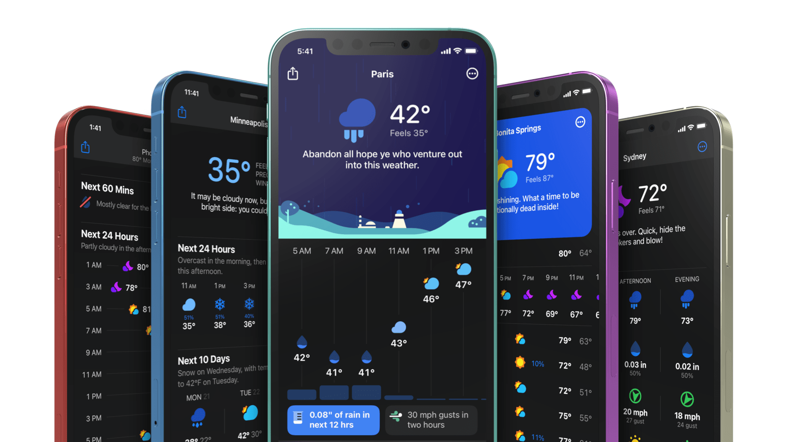 Nativní iOS aplikace Počasí vám toho moc neřekne. Zkuste raději Carrot Weather, které dostalo velkou aktualizaci a je nově zdarma.