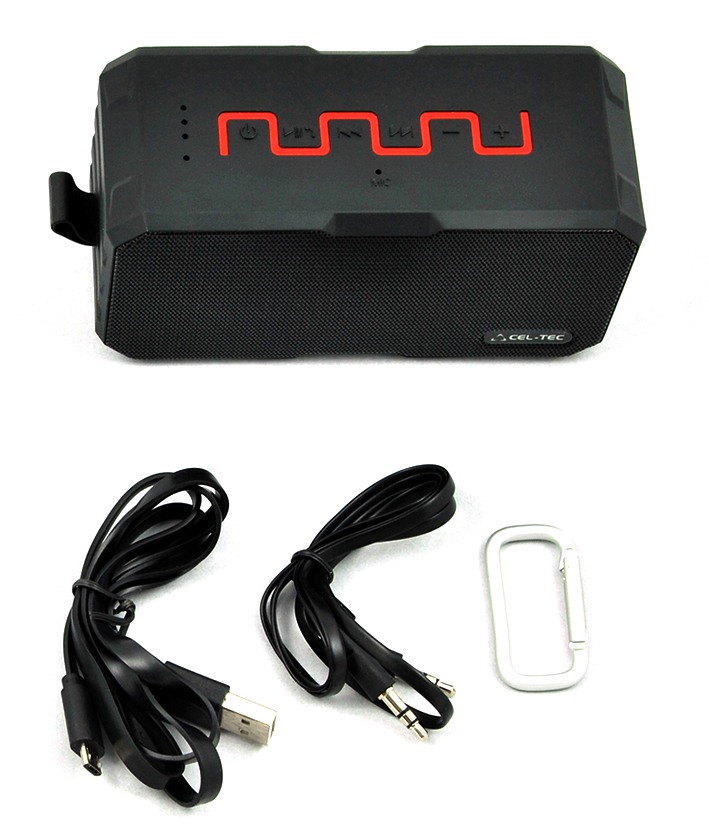 Díky obsaženému audiokabelu tak nemusíte poslouchat hudbu jen z mobilních telefonů s Bluetooth, ale třeba i počítače, z iPodů nebo z jiných MP3 zařízení atd. Přiložená karabina se pak hodí k tomu, že si reproduktor můžete připnout za opasek kalhot, na batoh nebo jej někam pověsit. Reproduktor na svém těle obsahuje oko pro její uchycení.
