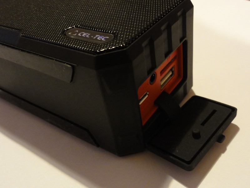 Co ale standardem rozhodně není, je možnost reproduktor využít také jako MP3 přehrávač, jež skladby čerpá z paměťové karty. Pod pryžovou krytkou naleznete slot na microSD kartu, z níž si můžete přehrát uloženou hudbu. Vyjma 3,5mm konektoru, o kterém již byla řeč, najdete pod krytkou také microUSB na nabíjení reproduktoru, a ještě jedno USB 2.0, jež razantně zvyšuje použitelnost reproduktoru na vyšší úroveň.