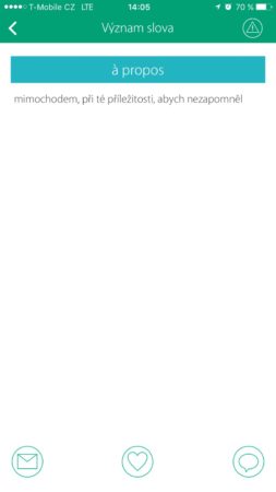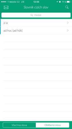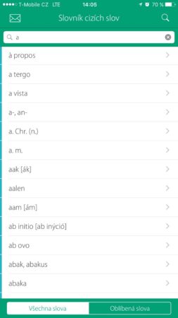 Design je přehledný a v titulu se rozhodně neztratíte, není totiž kde. Obsahuje jen dvě záložky – první se všemi obsaženými výrazy a druhou, ve které naleznete vámi označené výrazy jako oblíbené. Výrazy navíc můžete i sdílet, a to zprávou nebo emailem přímo z titulu.