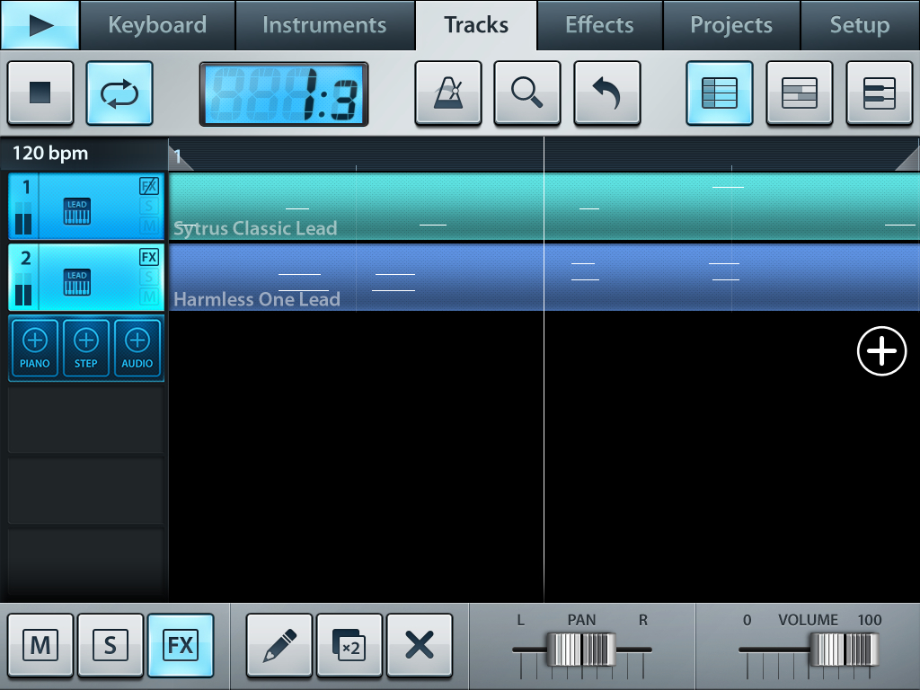 Proto jsem následně použil iOS verzi digital audio workstation FL Studio, kterou na desktopu sice nepoužívám (není verze pro Mac), iOS mutace je podle mě naprosto dokonalá. GarageBand je narozdíl od ní založen spíše na reálných nástrojích, což v mém případě je na škodu, protože moje zmíněné „cvrdlikání“ mi v hlavě evokovalo synth.
