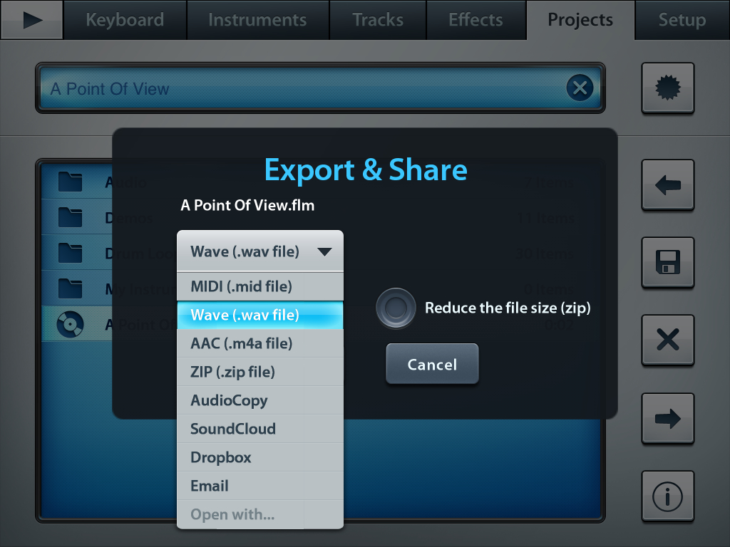 Nakonec jsem použil export do bezkompresního formátu, který jsem importoval do Logic Pro a dále na této chill out skladbě pracoval. Osobně jsem velmi vděčný za možnost kdykoliv rozvíjet svůj nápad a to mi umožňuje právě iOS, které je živnou půdou pro šikovné aplikace. Nikdo vás nenutí nahradit jimi vaší pracovní stanici, ale je tu velká možnost, že vám vaši práci obohatí. A o tom to je!