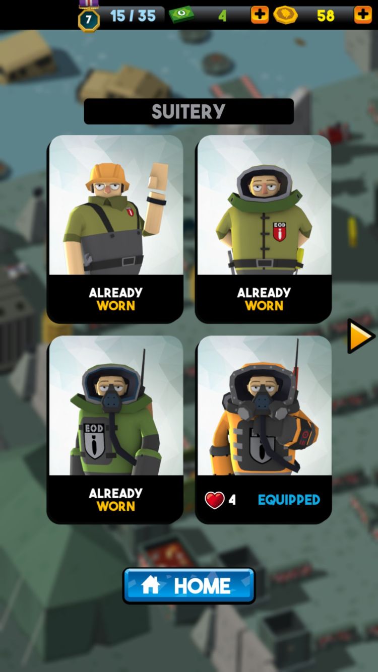 Na hrací ploše však nacházíte i zlaťáky, za které si můžete nakoupit nový oblek. Čím lepší (a dražší) je, tím vám poskytne více bezpečí – životů. Přežijete tedy i nějakou tu ránu od snajpra, výbuch granátu, přejetí džípem, spadnutí do kanálu atd.