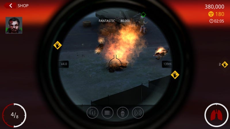 Zpestření přinese alespoň nutné přebíjení, které vás mnohdy nazlobí, když si nevšimnete, že jste dostříleli. Děláte jej gesty po displeji, a když se spletete, trvá o to déle. Druhým vytržením ze spánku je pak mise Death Valley, ve které střílíte zombíky nabíhající v několika vlnách na technika uprostřed mapy, který opravuje neopravitelné auto. Vy jej chcete ochránit, zombíci jej chtějí spapat. Čím více jich sejmete, tím vyšší skóre budete mít.