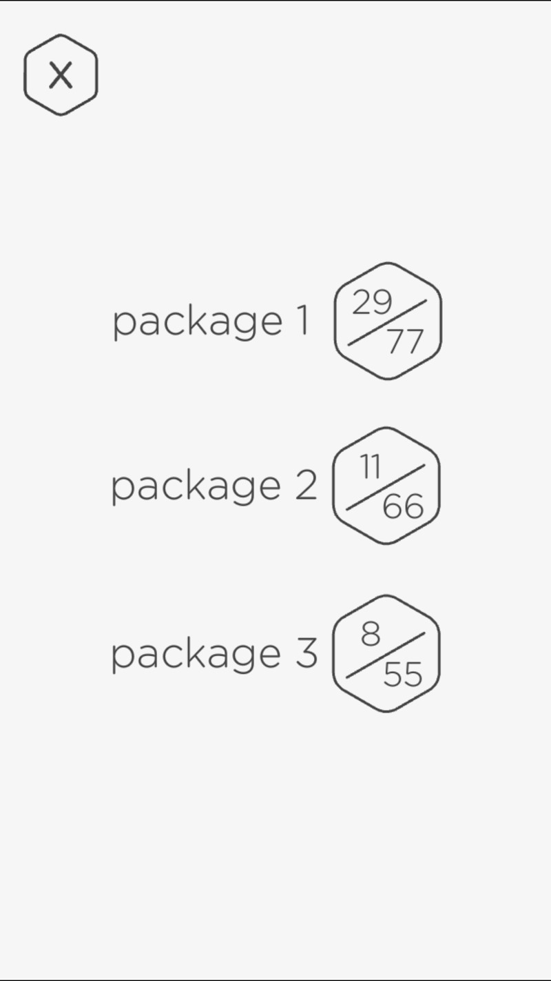 Zde už si vybere sekci hry, do které se chcete pustit. Jsou zde tři. Package 1 nabízí 77 úrovní, a je jen logickým rozplétáním uzlů do požadovaného tvaru. Package 2 nabízí úrovní 66, a už je značně náročnější. Ke správnému zdolání úrovně totiž musíte zapojit i nůžky a přebytečné lano vždy odstřihnout. Samozřejmě k tomu máte jen omezený počet pokusů.
