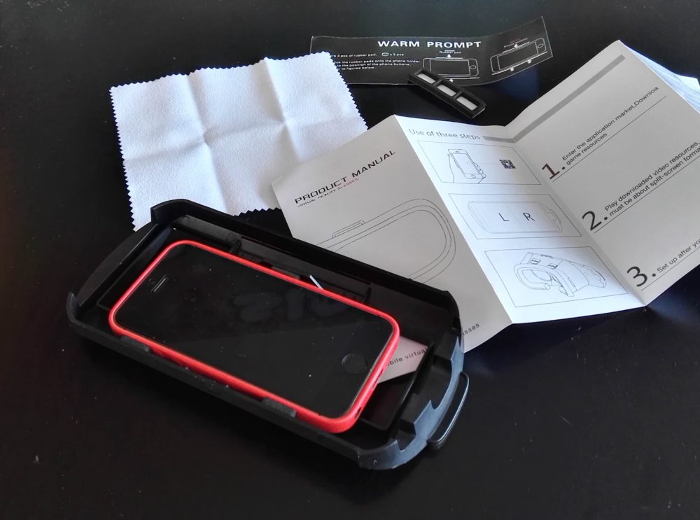 V jednoduché bílé krabičce se nachází brýle s ovladačem, manuálem, hadříkem a měkčenými nalepovacími mini polštářky, které se nalepí na vyndávací šuplík a díky tomu se nezničí váš smartphone. Brýle a ovladač jsou sladěny s krabičkou do bílé barvy. Díky Bluetooth ovladači se do světa her a virtuální reality můžete položit naplno.