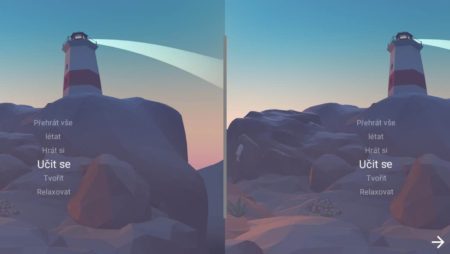 První a nejužitečnější aplikací je Cardboard. Tato aplikace je přímo od Googlu a naučí vás, jak správně používat VR brýle a ovladač. Při „tutoriálu“ vás provede úžasnými ukázkami tvořených z různých geometrických útvarů, které následně vytvoří zajímavé objekty. Po dokončení tohoto malého „tutoriálu“ vám nabídne k instalaci další aplikace/hry, které za to určitě stojí.