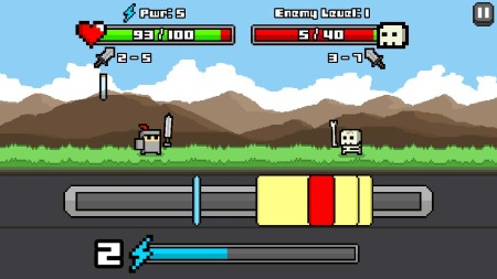 Ty porazíte tak, že se ve správný okamžik strefíte do bloku o třech různých barvách – žlutý pro útok, zelený pro silný útok a červený pro obranu před nepřítelem. Nachází se zde i modrý pruh, pomocí kterého provedete kombo útok. Jakmile porazíte nepřítele, můžete si vybrat ze tří odměn. Například obnovení zdraví na maximum a podobně.