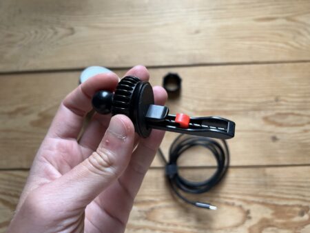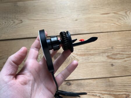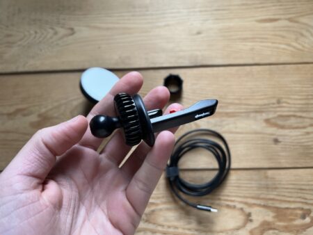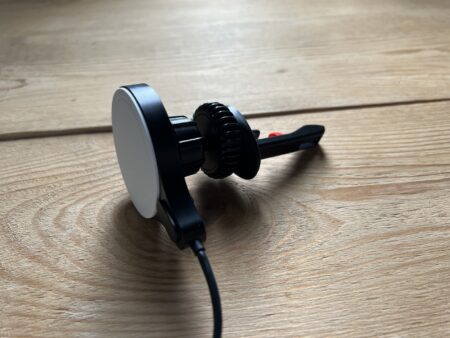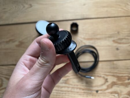 Na jeho konci je typický kloub s maticí. Nasadíte tedy hlavici a maticí ji utáhnete v požadované poloze. Je to jednoduché a rychlé. Protože se jedná o MagSafe držák, je zde přítomno i bezdrátové nabíjení. Certifikace MFM, tedy Made For MagSafe, pak zajišťuje maximální rychlost nabíjení. Ta je 15 W. Kabel je ale integrovaný. Na druhou stranu, pokud se rozbije, výrobce ho zvládne snadno vyměnit.