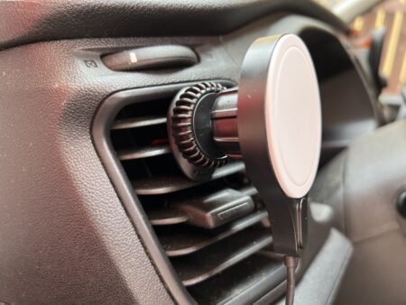 Jednoduše skvělý a pevný držák pro iPhone do ventilací mřížky automobilu, který nabídne jak MagSafe a tedy rychlé nabíjení, tak integrovaný USB-C kabel.