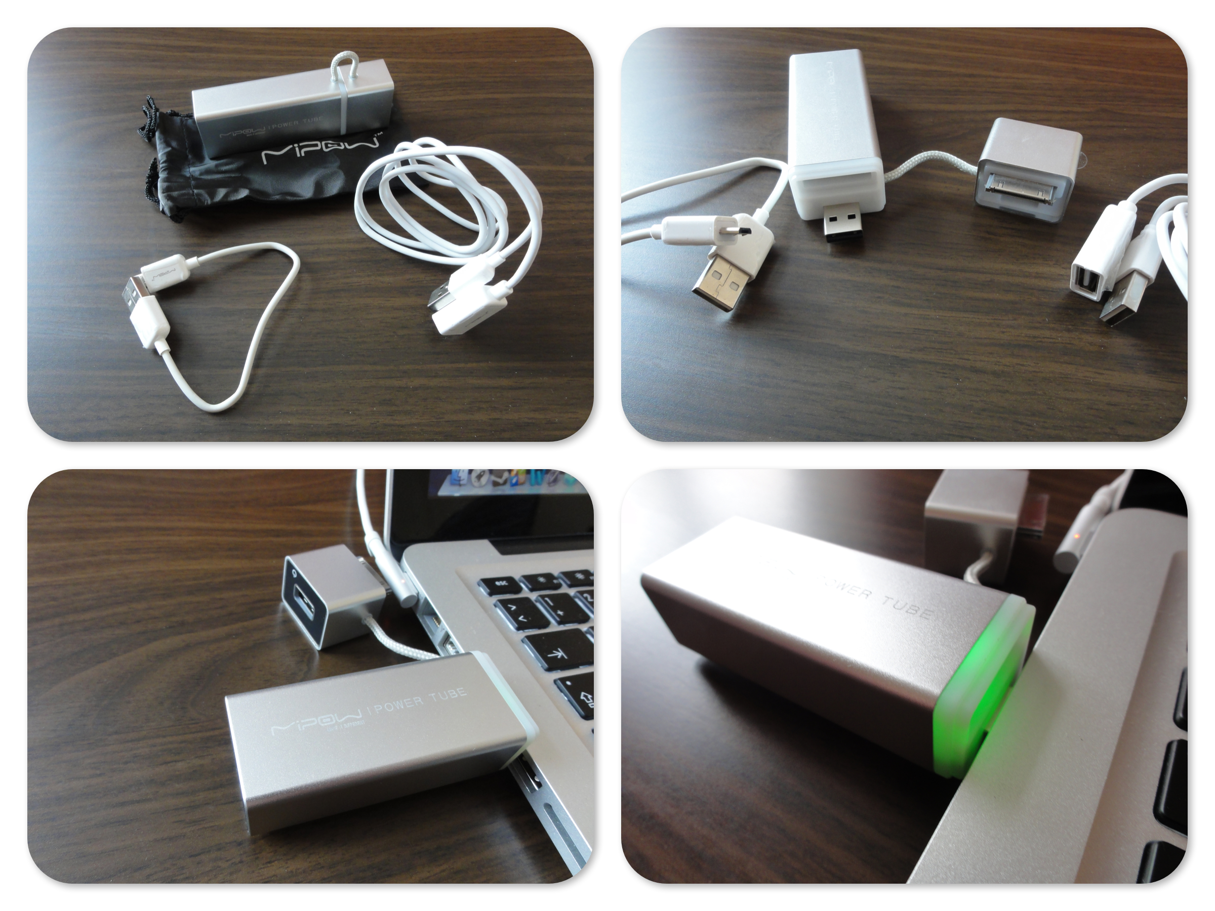 Baterie nabíjí vaše zařízení opravdu rychle. Při srovnání nabíjení iPhone ze sítě, jsem pomocí PowerTube nabil telefon skoro o půl hodiny rychleji. Kolik vám zbývá šťávy v baterii, poznáte snadno. U USB konektoru se nachází tlačítko, které po stisknutí rozzáří diody, které pulzují různými barvami. Modrá je plný stav, přičemž s klesající hodnotou se barvy postupně mění na zelenou, oranžovou a červenou. Toto se děje i při nabíjení, jen samozřejmě v opačném sledu. Když svítí pouze dioda modrá a nepulzuje, je plně nabito. Nabíjet můžete přímo z USB konektoru vašeho počítače, nebo i ze sítě s použitím adaptéru.