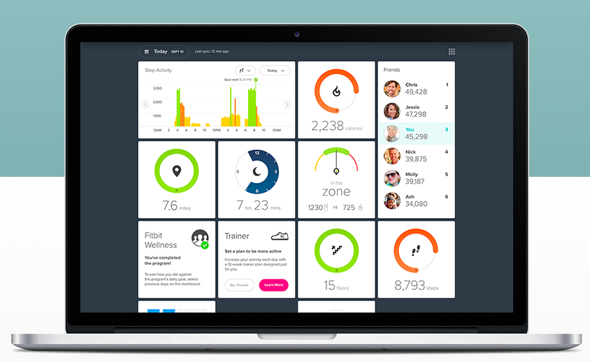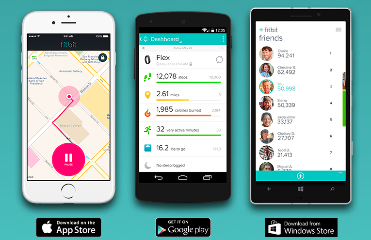 U všech produktů Fitbit je samozřejmostí synchronizace. Ta je možná buď přes mobilní telefon obsahují Bluetooth 4, tj. iPhone 4s a novější nebo pomocí přiloženého USB klíče. Fitbit jako jediná firma nabízí možnou synchronizaci přímo do počítače, jejich produkty jsou tak vhodné i pro uživatele se staršími telefony. Vše se poté z mobilu i z počítače nahrává na web, kde se data přehledně zobrazují.