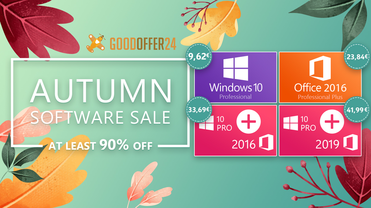 Windows 10 Pro nebo MS Office 2016 za hubičku? GoodOffer24 právě nabízí ve svých podzimních slevách velmi zajímavé akce právě na tento software.