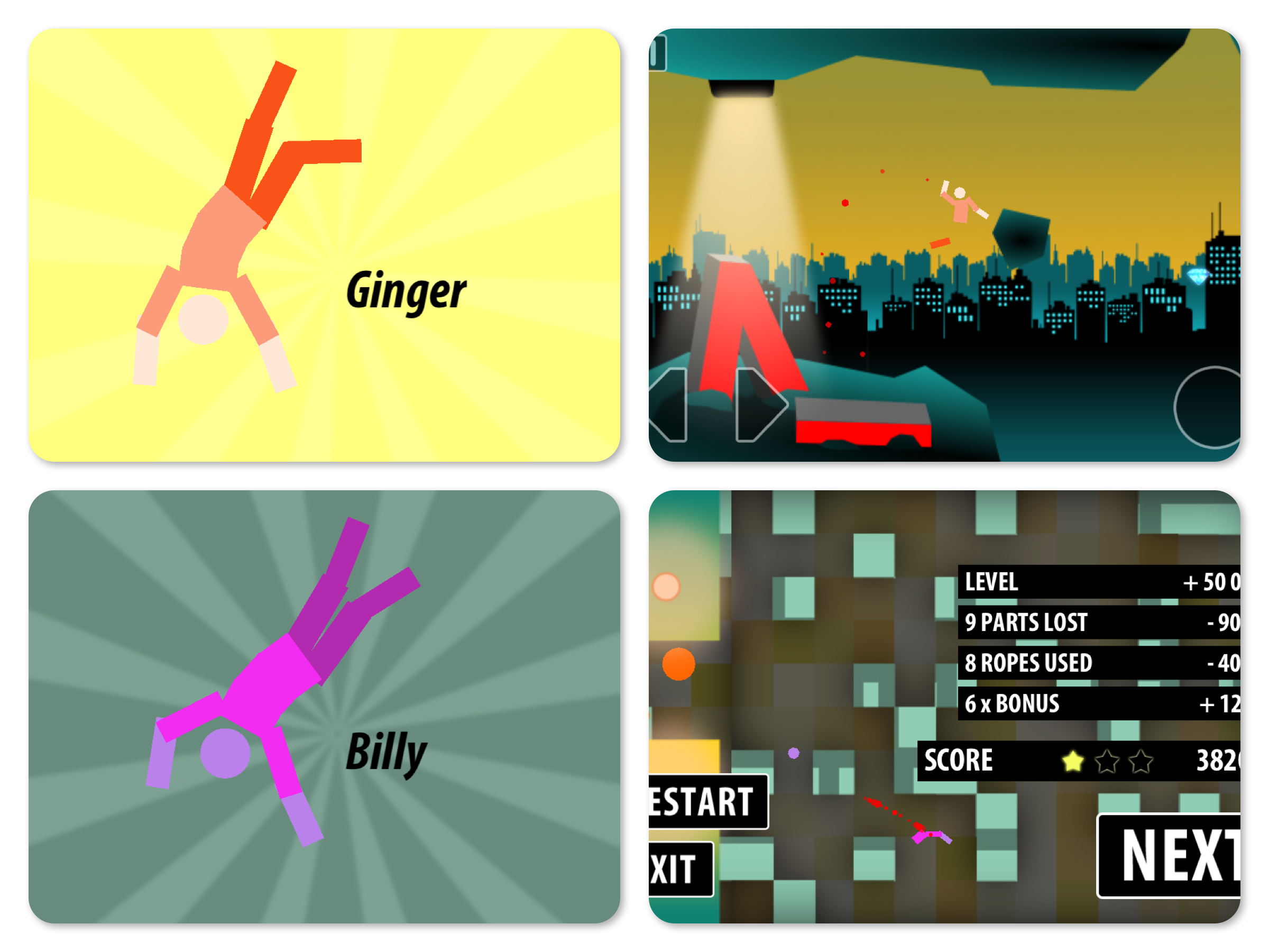 A o čem je? V podstatě je to taková „běhačka“, kde však neběžíte, nicméně se do cíle snažíte dostat pomocí vašeho vystřelovacího lana. V cestě vám ale brání různě předměty a objekty, o které nejenže se zaseknete, ale hlavně, nabourání vás stojí nějakou tu končetinu.
