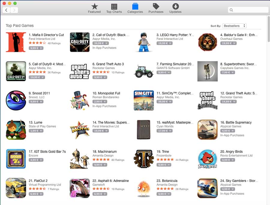 AppStore je jasna volba, tam je her kupa, ale chybi neco jako minimalni systemove pozadavky, takze jdete trosku do rizika, i kdyz pokud napisete ze chcete vratit penize, protoze to nefunguje tak to u Applu neni problem (z vlastni zkusenosti).