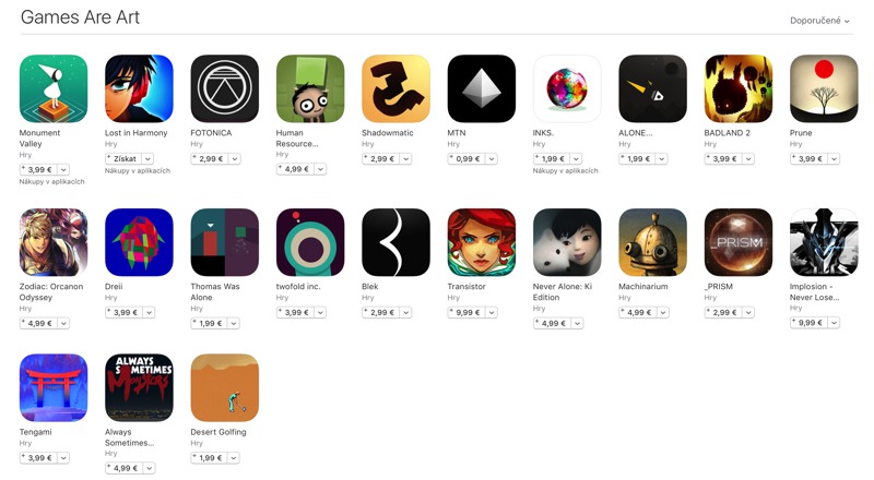 Seznam aplikací a her z kolekce „Games Are Art“ z App Store: