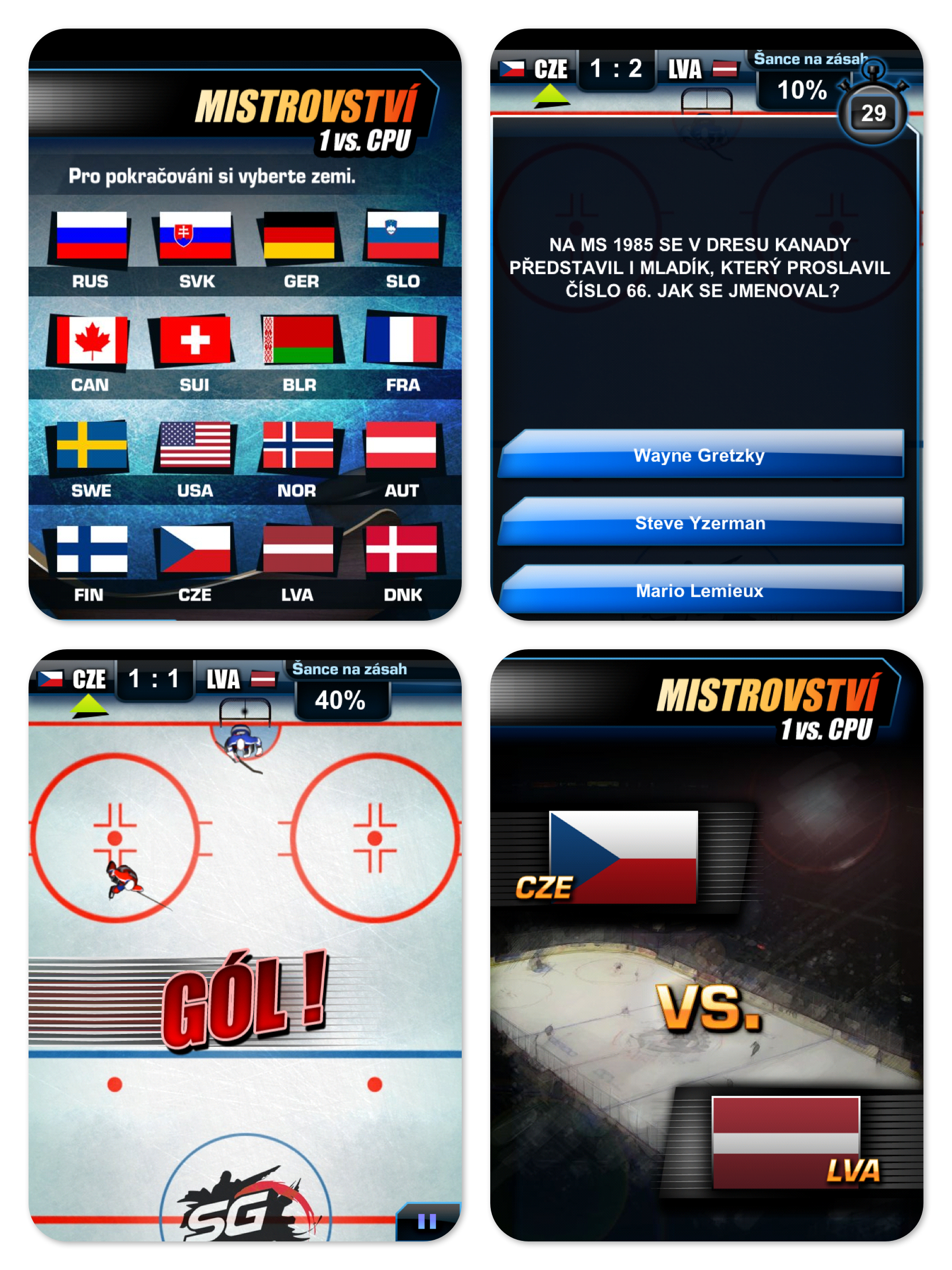Hockey Arena 2011 – Hokejový vědomostní kvíz. Odpovíte-li správně, šance na vstřelení branky stoupá, odpovíte-li špatně, zvyšujete si pravděpodobnost prohry.