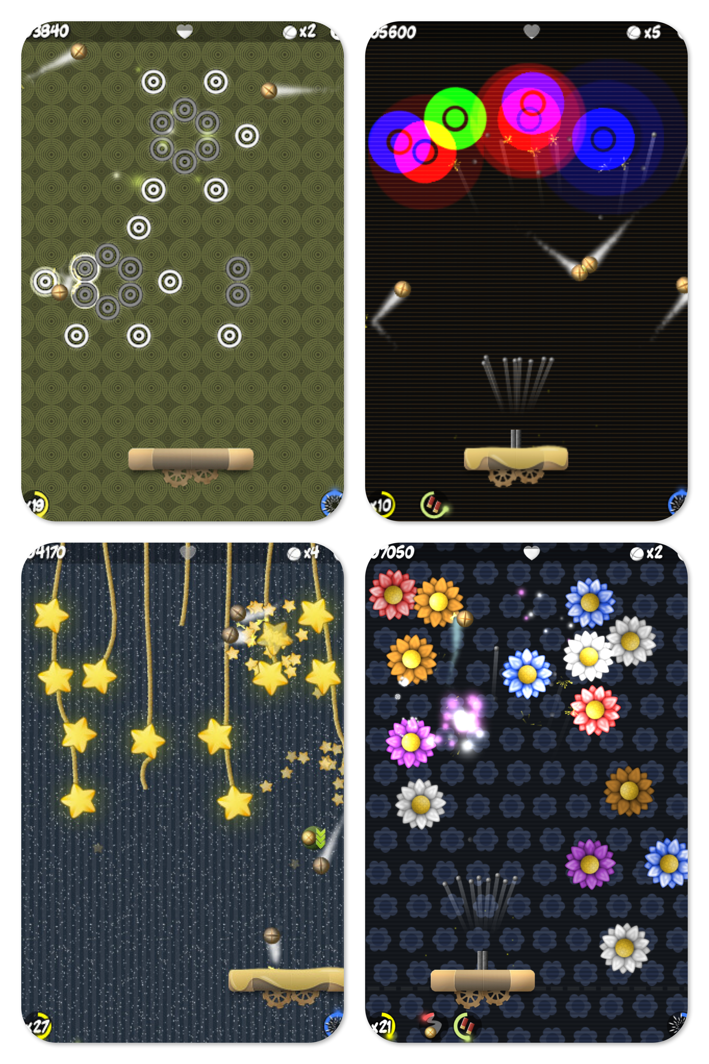 Abyste to neměli tak jednoduché, tak máte na výběr ze čtyř úrovní obtížnosti, přičemž varianta Extreme je opravdu natolik extrémní, že jsem měl problém projít již třetím kolem. Takže to, že na začátku hry máte 10 životů, je zcela zanedbatelná položka. Obrazce svým pohybem totiž většinou odstřelí kuličku tam, kde byste ji rozhodně nečekali. Co ale čekat můžete, je přítomnost Game Center a pěkné řádky Úspěchů.