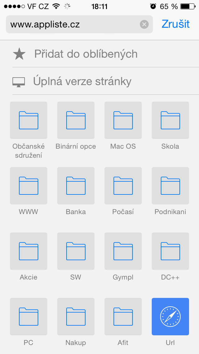 Nelíbí se vám mobilní verze webové stránky, které nezobrazuji plnohodnotně celý web? Apple do Safari vložil možnost zobrazit úplnou verzi webové stránky. Klepněte na adresní řádek, stáhněte dolů seznam se záložkami nebo stránkami a objeví se volba Úplná verze stránky.
