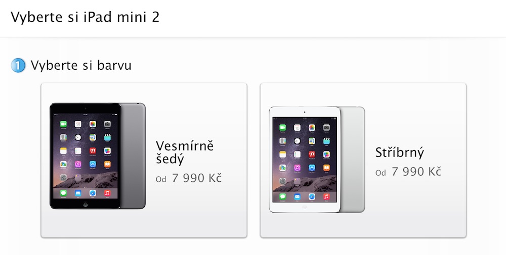 V nabídce zůstal nadále iPad mini 2 s Retina displejem, který je nabízen v kapacitách 16 a 32 GB. Starší iPad se dočkal zlevnění. Nejlevnější verze stojí 7 990 Kč, nejdražší pak 12 790 Kč.