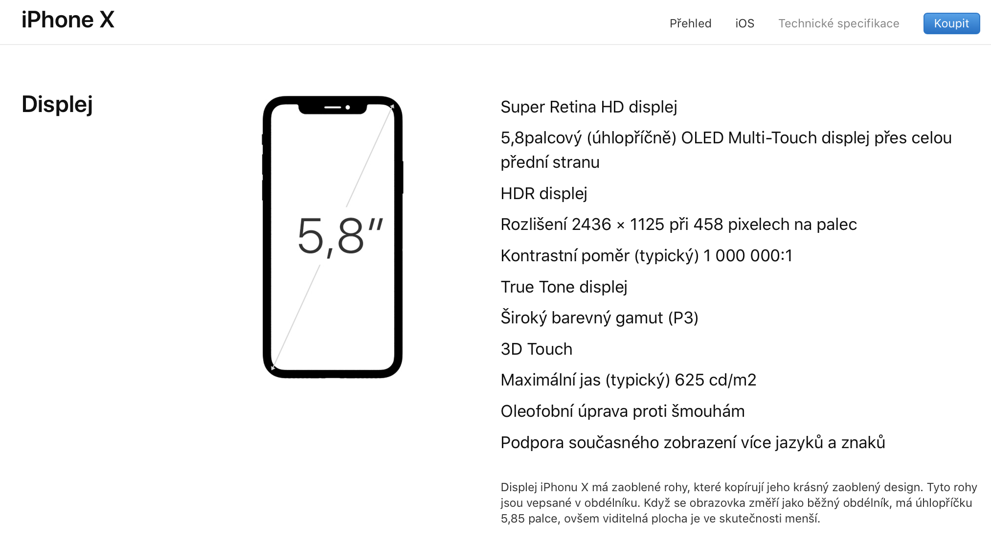 Rád bych se zeptal zda iPhone X má displej 5.8 nebo 5.85. Vy uvádíte 5.8 ale na Apple stránkách uvádějí 5.85 tak jak to teda je?