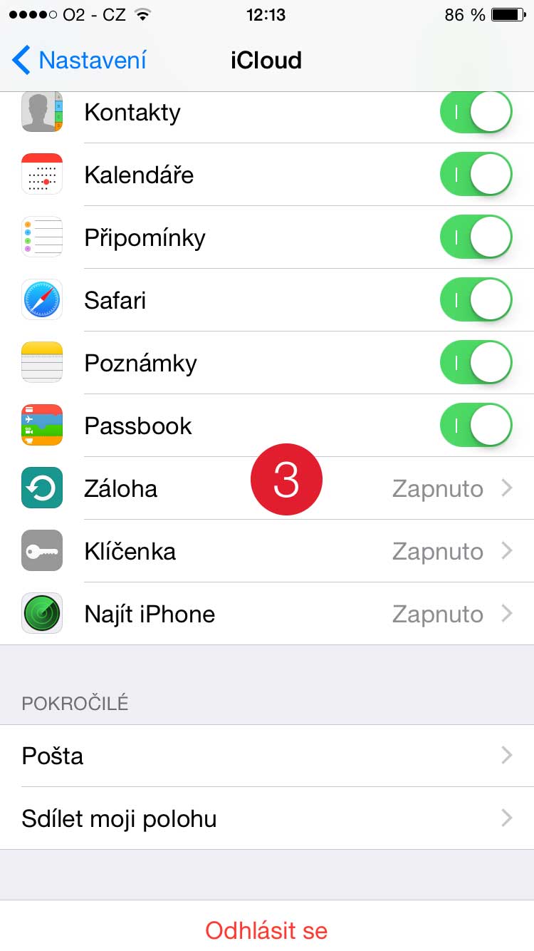 První nejdůležitější věcí je zazálohovat svoje fotky, aplikace a hudbu. Celý postup funguje i pro iPad a iPod. Existují na to dva způsoby. První možnost je záloha přes iCloud. Jedná se o jednoduché a spolehlivé řešení. V Nastavení (1) najedete na položku iCloud (2), dole naleznete položku Záloha (3). Zde už jenom zvolíte zálohovat a po chvíli máte zazálohované všechny svoje fotky, nastavení a aplikace. Hudbu si musíte z telefonu vytáhnout přes program iExplorer. Pokud ji máte zakoupenou na iTunes, tak ji pouze po prvním nastavením přes obchod zase stáhnete, stejně jako aplikaci.