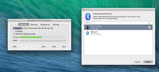 Jeho nastavení je velmi jednoduché, prostě si vyberete jakýkoli párovatelný přístroj s Bluetooth a je hotovo. Pokud se stane, že zařízení nebude v dosahu nebo Bluetooth vypnete, tak se Mac zamkne. Aplikace samozřejmě nabízí řadu nastavení. Nastavujete heslo pro případ, že přístroj nemáte u sebe a chcete pracovat, je tu možnost dvojího ověření jak heslem, tak přes Bluetooth. Pokud by se vám stalo, že se s mobilem nevzdalujete natolik, aby se od počítače odpojil, lze využít monitorování signálu a Mac se zamkne podle síly signálu, respektive podle vzdálenosti přístroje.