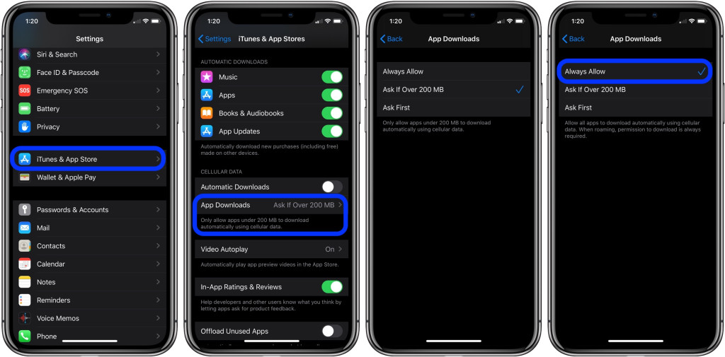 Jak stáhnout aplikaci z App Store skrze mobilní data, když má více jak 200 MB? Stačí iOS 13