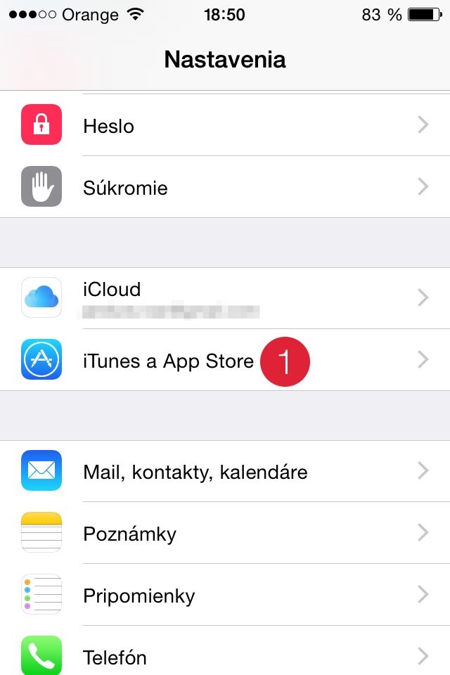 - V aplikaci Nastavení vyberte položku iTunes a App Store (1).